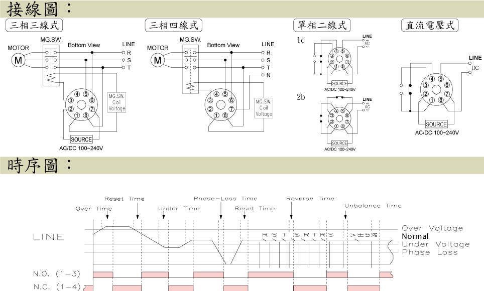 - 可作欠相檢測,其欠相延遲時間為固定2秒。