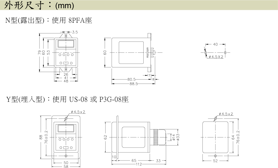 | 使用壽命 | 機械: 5,000,000 次 電氣: 100,000 次(額定容量內) |